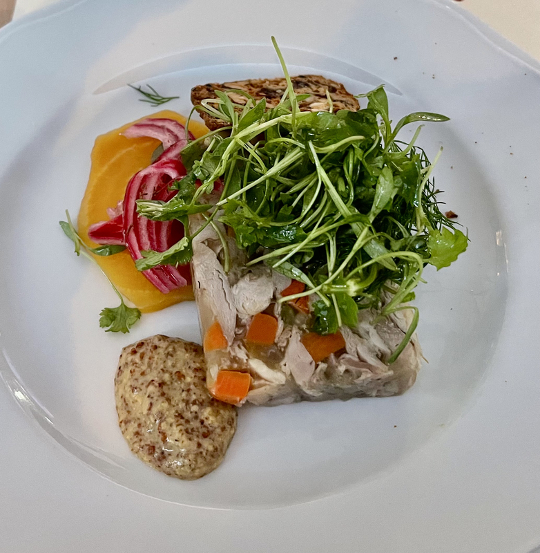The April meeting for the Memphis Wine and Food Society was held at the Memphis Hunt and Polo club. Dinner chairman Billy Weiss and executive chef Patrick O'Brien collaborated on a Piedmont themed event featuring regional cuisine and wines. The dinner began with a traditional dish of terrine of rabbit. While not frequently served in the United States, this classic European charcuterie was wonderfully prepared and perfectly matched with the 2023 Roagna , Langha Blanco.