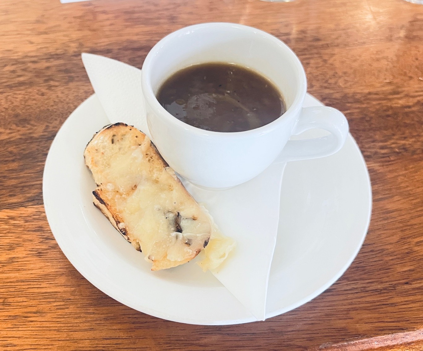An appetiser of French onion soup was served- it was rich, savoury and ridiculously comforting. Sweet, slow cooked onions and rich beefy broth served with a cheesy crusty crouton was perfection in a cup.